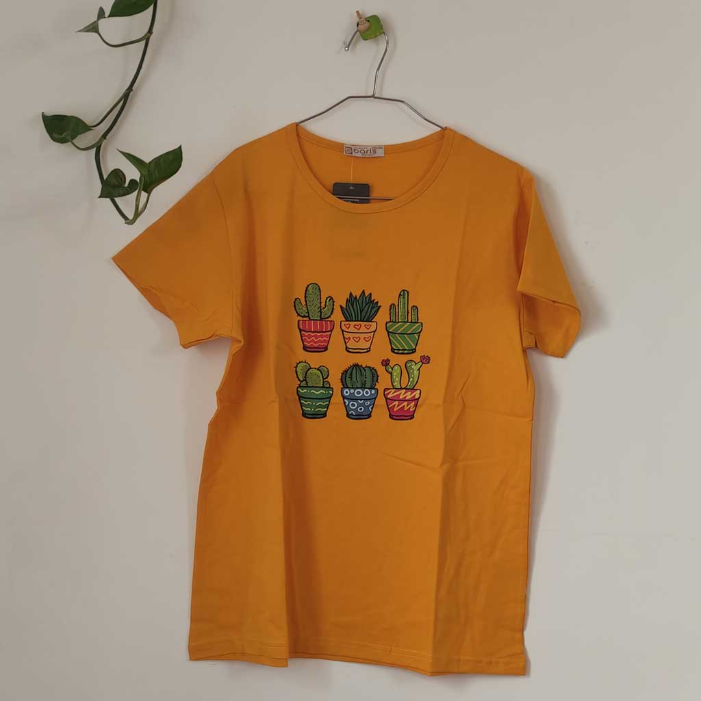 تیشرت زنانه پنبه ترک کاکتوس-خردلی
