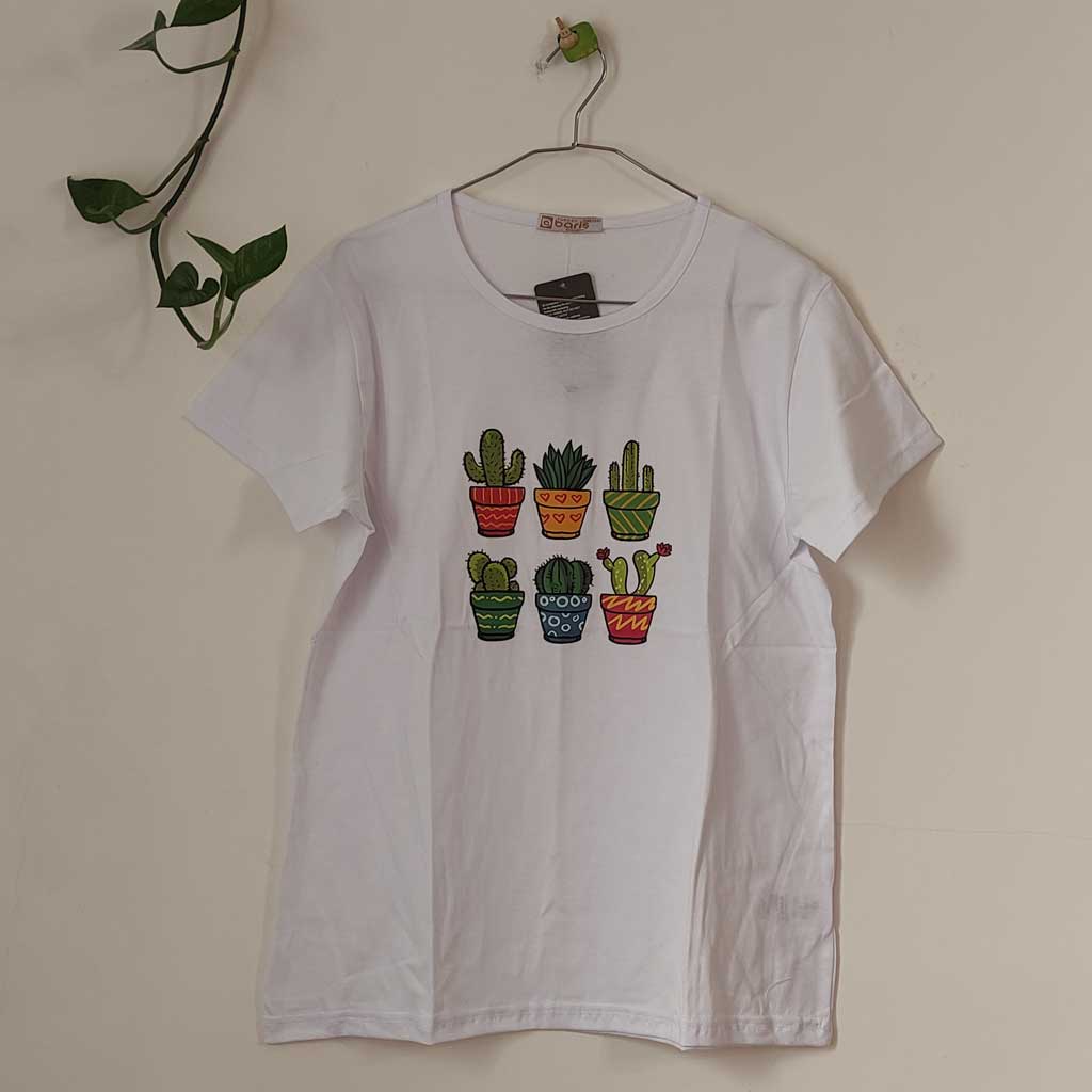 تیشرت زنانه پنبه ترک کاکتوس-سفید