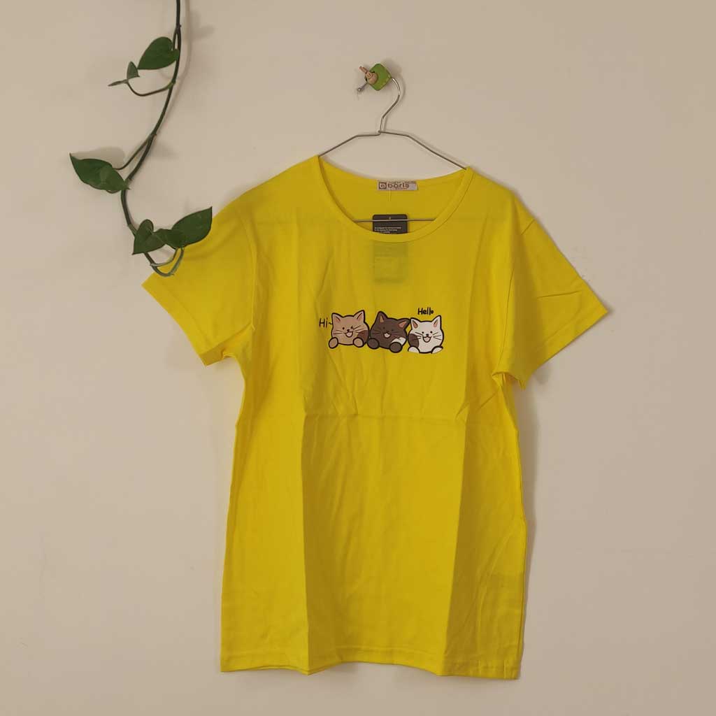 تیشرت زنانه پنبه ترک گربه-زرد