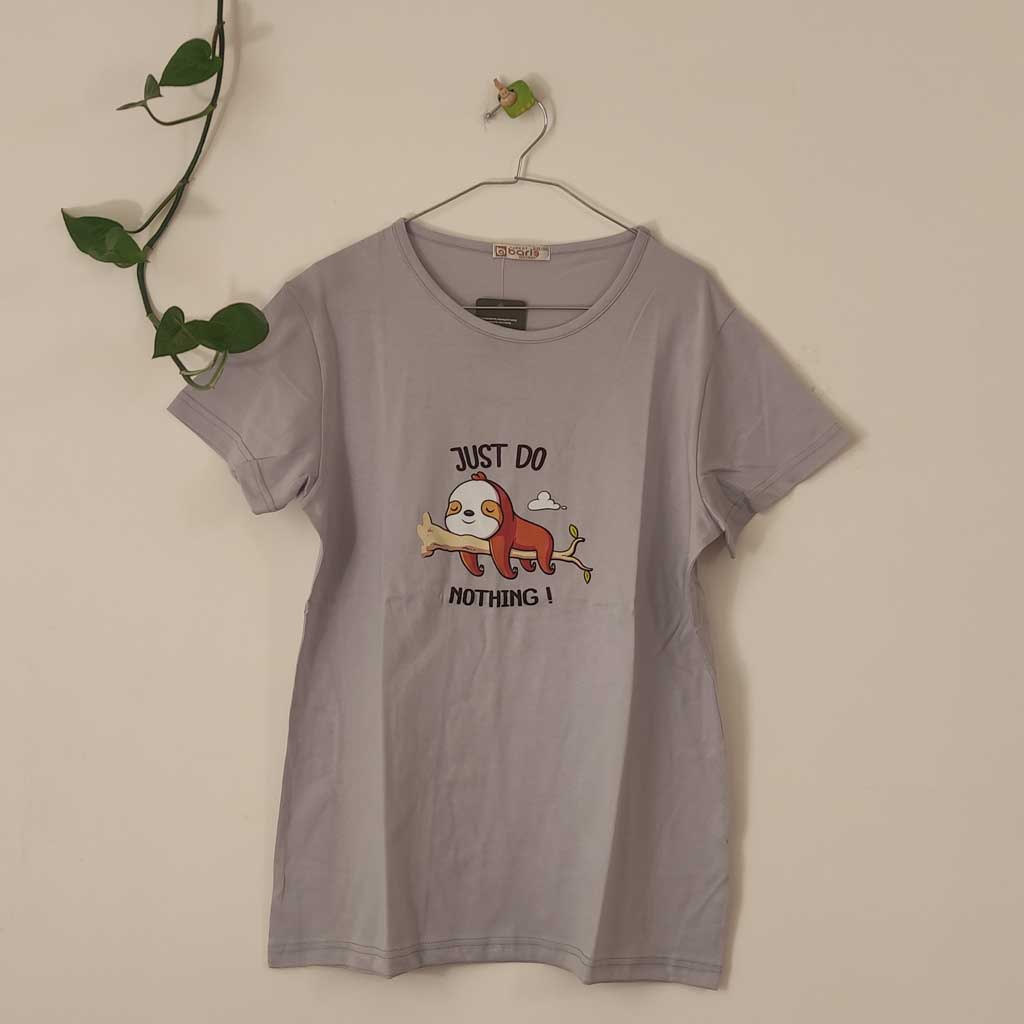 تیشرت زنانه پنبه ترک Just Do Nothing-طوسی