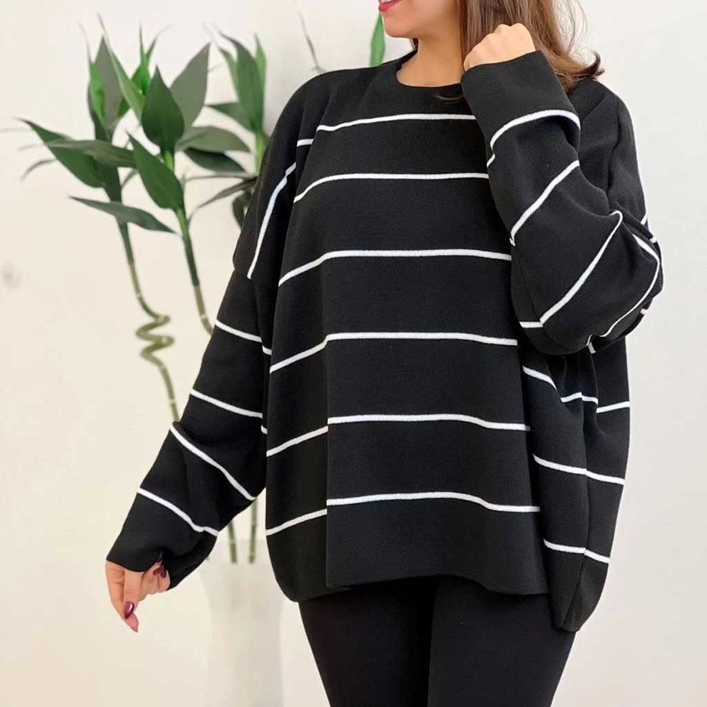 جنس: بافتنی | یقه: گرد | طرح: راه راه