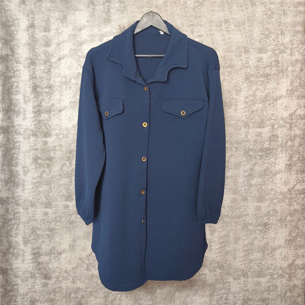 ویژگی: دو طرح جیب روی سینه | پای کار کمی هلال | دکمه دار | مچ کشی