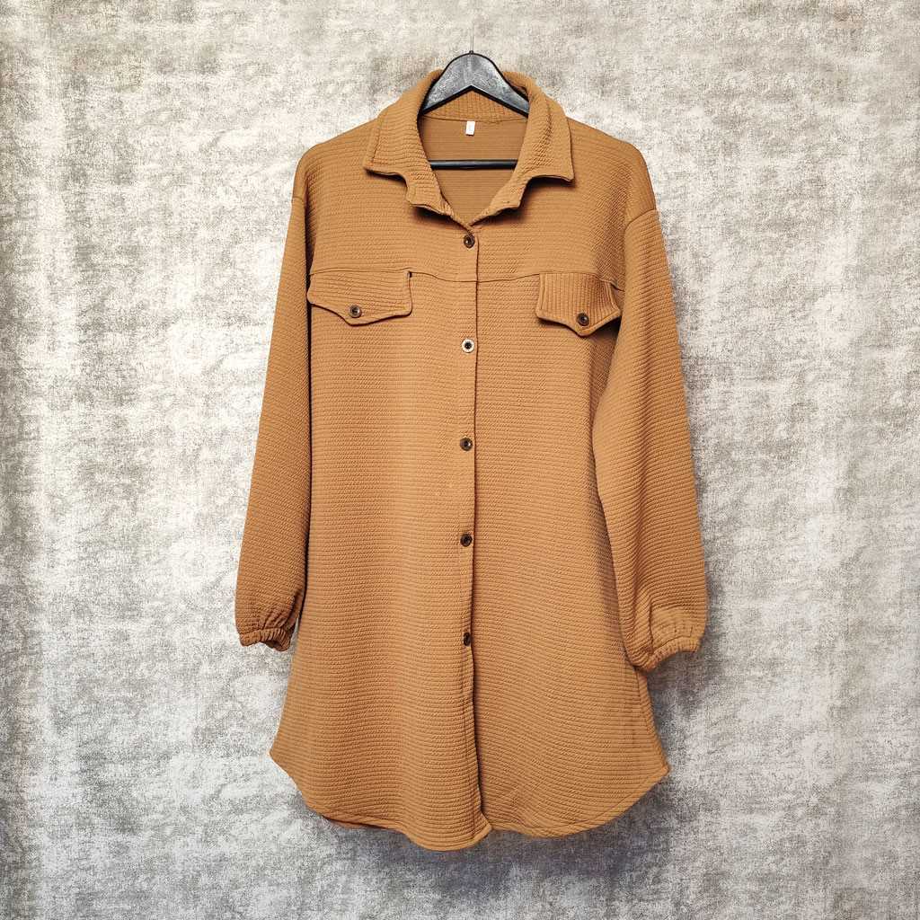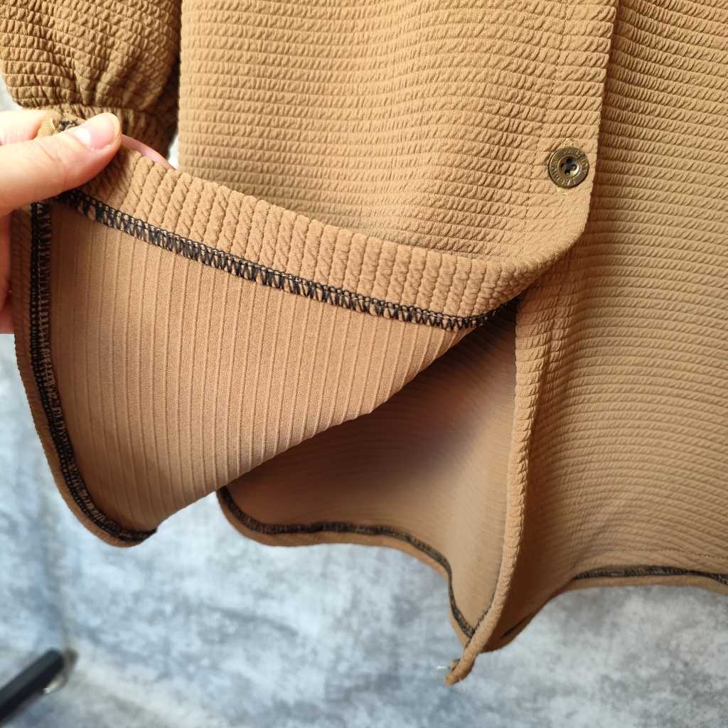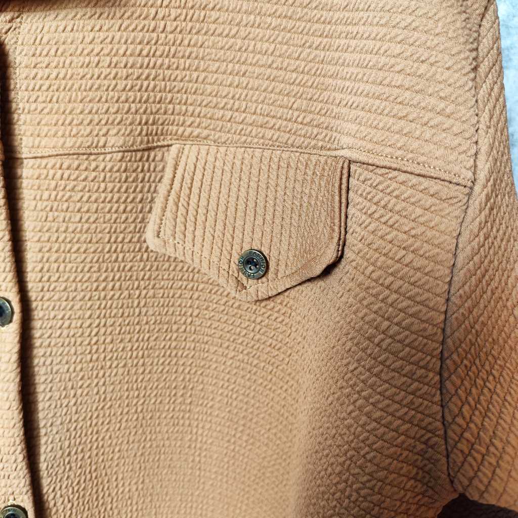 ویژگی: دو طرح جیب روی سینه | پای کار کمی هلال | دکمه دار | مچ کشی
