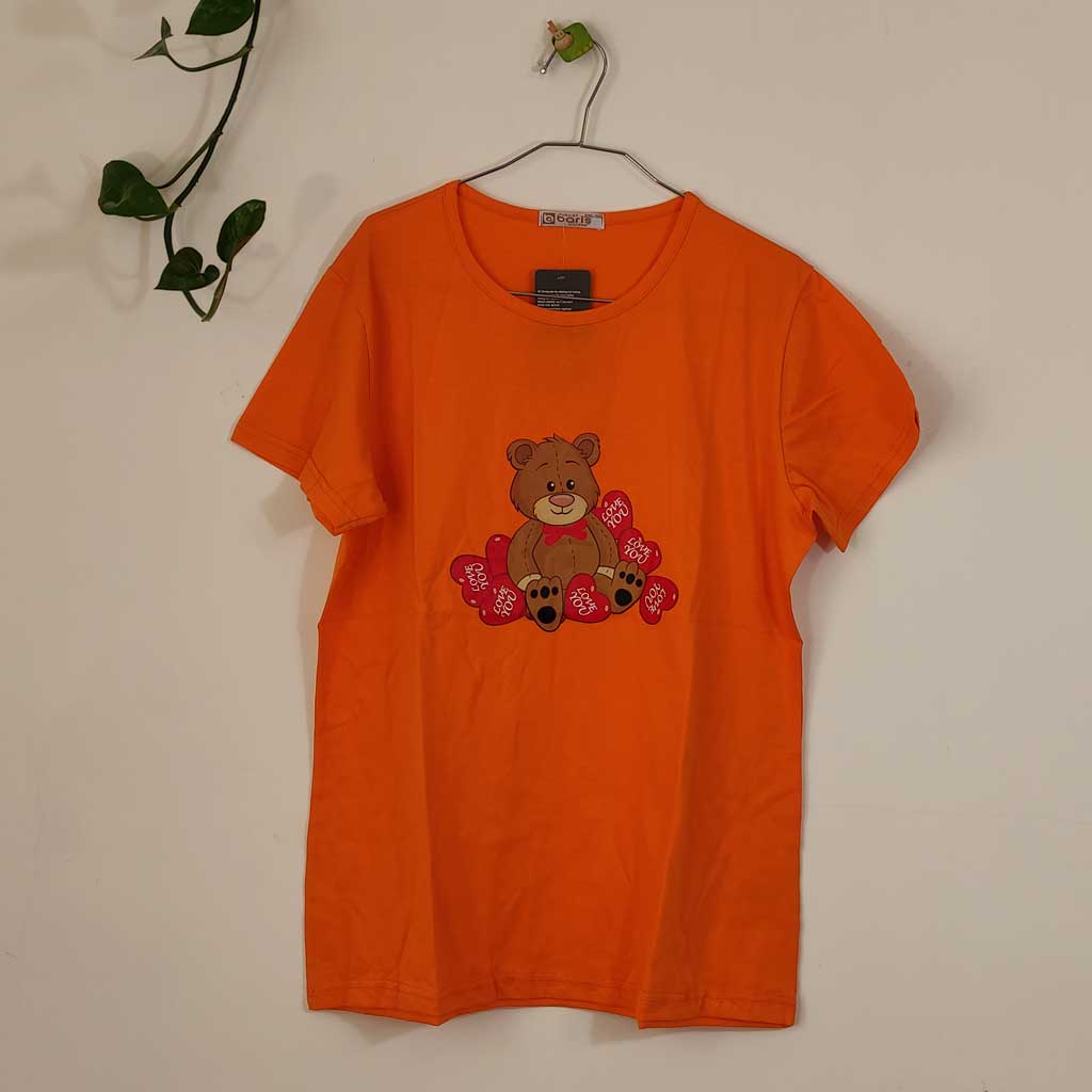 تیشرت زنانه پنبه ترک Love you-نارنجی